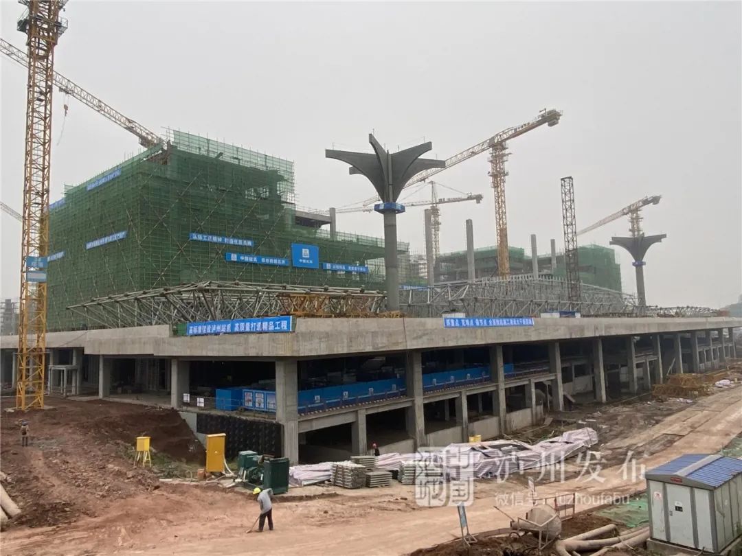 這標志著瀘州高鐵站高架站房和側式站房所有混凝土主體結構全面封頂。接下來,站房建設將由土建施工轉為鋼結構施工,并將同步啟動裝飾裝修。